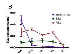 In 2014, Wang et al compared four detergents used in the perfusion decellularization system of porcine kidney: 1% SDS, 1% Triton X-100, 1% peracetic acid (PAA), and 1% Sodium Deoxycholate (NaDOC). The results suggest that 1% SDS is the most efficient detergent in removing cells from porcine kidney; the decellularized kidney had least amount of residual DNA. They also proved that using Triton X-100 as a rising solution facilitates the removal of residual SDS [14].