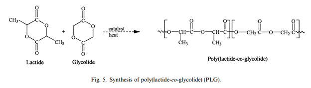 Result of the copolymerization of two monomers, lactide and glycolide. Different stereoisomers of these monomers yield changes in physical properties. Glycolide has a tendency to be amorphous due to the disruption in the regularity of the polymer chain with the combination of another monomer. Similarly, other materials such as trimethylene carbonate can be combined with PGA to create materials with changes in flexibility, and absorption time. [8]