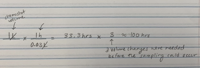 - The length of time for which the chemostat is operated before data is collected is 100 hours.