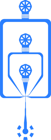 Dual aqueous inlet flow-focusing junction for the generation of ≈ 3 pL droplets. Blue: depth ≈ 12 µm