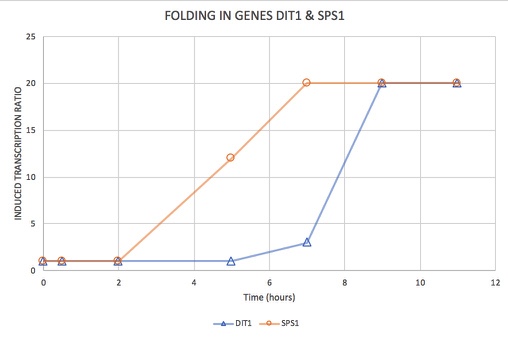 1. Choose two genes from Figure 4.6b (PDF of figures on Brightspace) and draw a graph to represent the change in transcription over time. You can either create your plot in Excel and put the image up on your wiki page or you can do it by hand and upload a picture or scan.