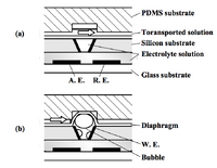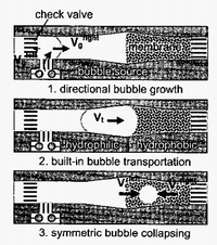 Microelectrochemical systems contribute to ongoing and further research towards scientific discoveries within micrototal analysis system (µ-TAS). Bubble-based actuation is a practice based on the simplicity to fabricate the technological device and bubbles are easily able to fit towards different sized microfluidic channels. These microfluidic devices are not limited to electrochemical bubbles. There are a number of different methods to generate bubbles, such as piezoelectricity, electrostatics, pneumatics, thermopneumatics, and electromagnetism.