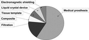 The diversity in electrospun material applications stems from the versatility and tunability of the system parameters (Figure 3). For example, a large application for these fiber mats is filtration. Electrospun materials are beneficial in the filtration field not only because the polymer solution choice can be application defined, but also because these solutions can be impregnated with bacteria killing nanoparticles such as silver.[4] Filtration is actually the only electrospinning application that has reached the industry level. Freudenberg Nonwovens is a manufacturer for electrospun filter media that has been in business for over 20 years. Other electrospun filtration companies include Donaldson and Finetex.[5]