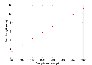 Path length as a function of volume added to a well