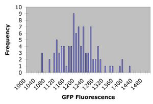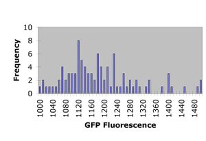 Histograms of the GFP readings for each plate are shown below. Absorbance readings are not shown but showed similar trends to the GFP readings.