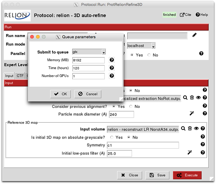 - Standard submission script for relion for GPU, GTX queue (it will be prefilled in the interface):