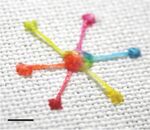 Recent research for microfluidic devices Figure 1. Fabric-based microfluidics.[2]that are fabricated on paper and textile substrates have largely been prompted by the desire to develop point-of-care (POC) diagnostic kits. Using textiles as a platform for microfluidics takes advantage of wicking either by drawing fluids through the space between threads or thread internal cavity structure. Designing smart threads layout or combining fibrous with hydrophilic and hydrophobic features can be used to realize flow control. Paper-based microfluidic devices without any imposed channels (printed etc.) will allow for wicking isotropically. However, the individual fiber/yarns of the fabric allow for definition of channels on their own. Besides, fabric microfluidic devices have some other advantages, e.g., flexibility, performing wetting/non-wetting contrast without additional barrier, 3D structure.[1] Fig. 1 shows one example of fabric-based microfluidics: the cotton yarns on hydrophobic fabric transfer dyes in different zones.