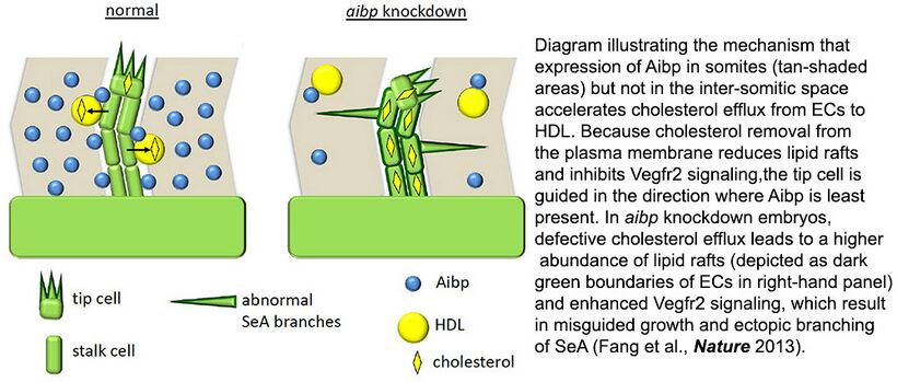 Based upon the findings, the Fang laboratory will be focusing on the role of AIBP-regulated lipid metabolism in endothelial cell biology. We will use a plethora of developmental and disease models such as zebrafish angiogenesis, murine angiogenesis, heart hypertrophy, heart ischemia and reperfusion, peripheral artery ischemia and reperfusion, corneal angiogenesis, and tumorigenesis in mice.