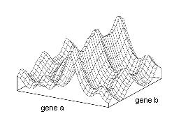 In the adaptive landscape, of S.Wright, the fitness associated with different genotypes as well as the relation between two genotypes is visualized in a map. Different evolutionary forces such as endogamy, genetic drift, horizontal transfer and natural selection move the population across the adaptive landscape.[1] An analogy to the movement of populations across adaptive landscape could be a ball falling into a cone by the action of gravity (although natural selection usually moves populations uphill).