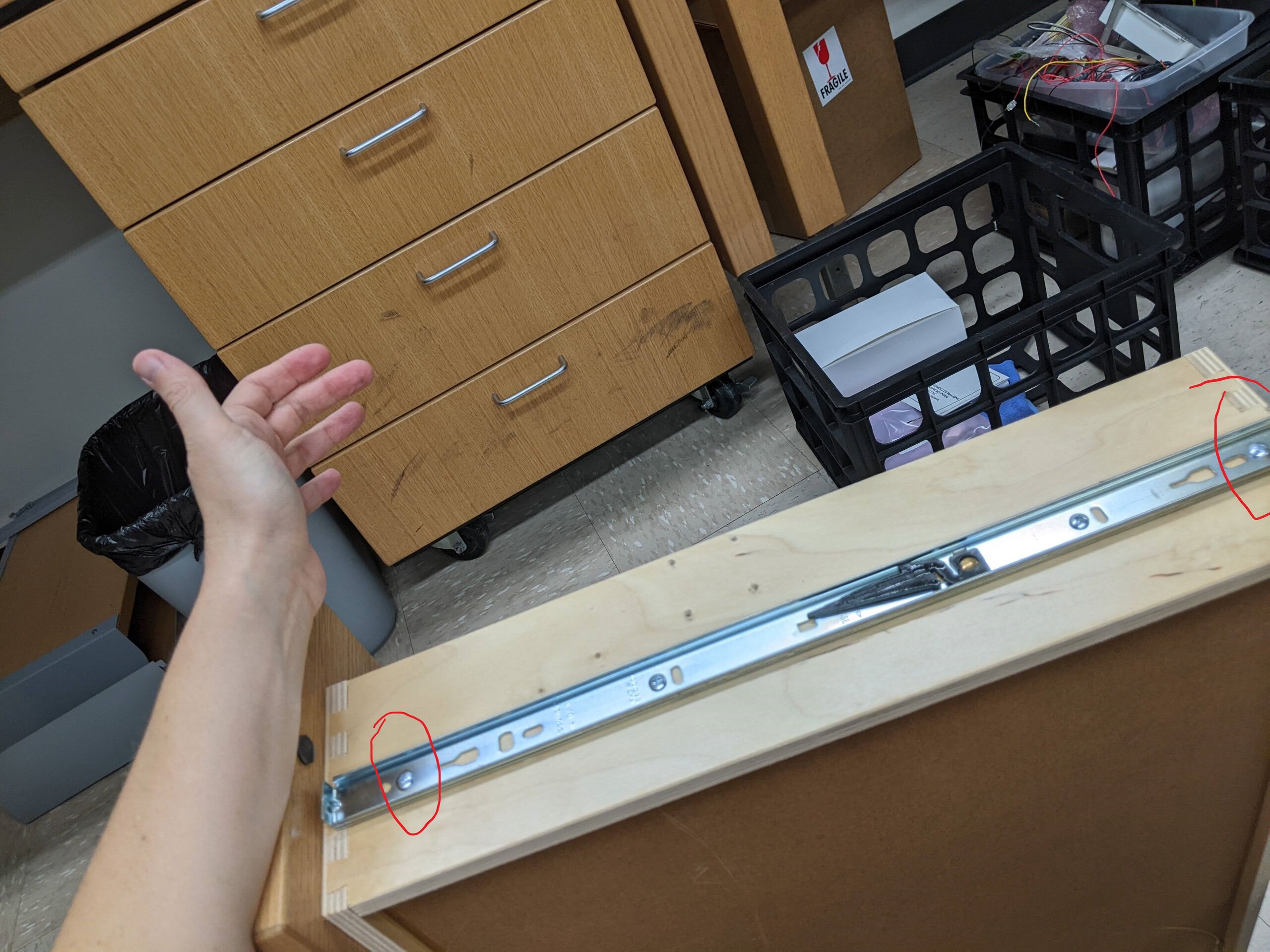 | current | 21:35, 20 August 2023 | 4,032 × 3,024 (1.38 MB) | Megan N McClean (talk | contribs) | Adjusting the tracks on the drawers |