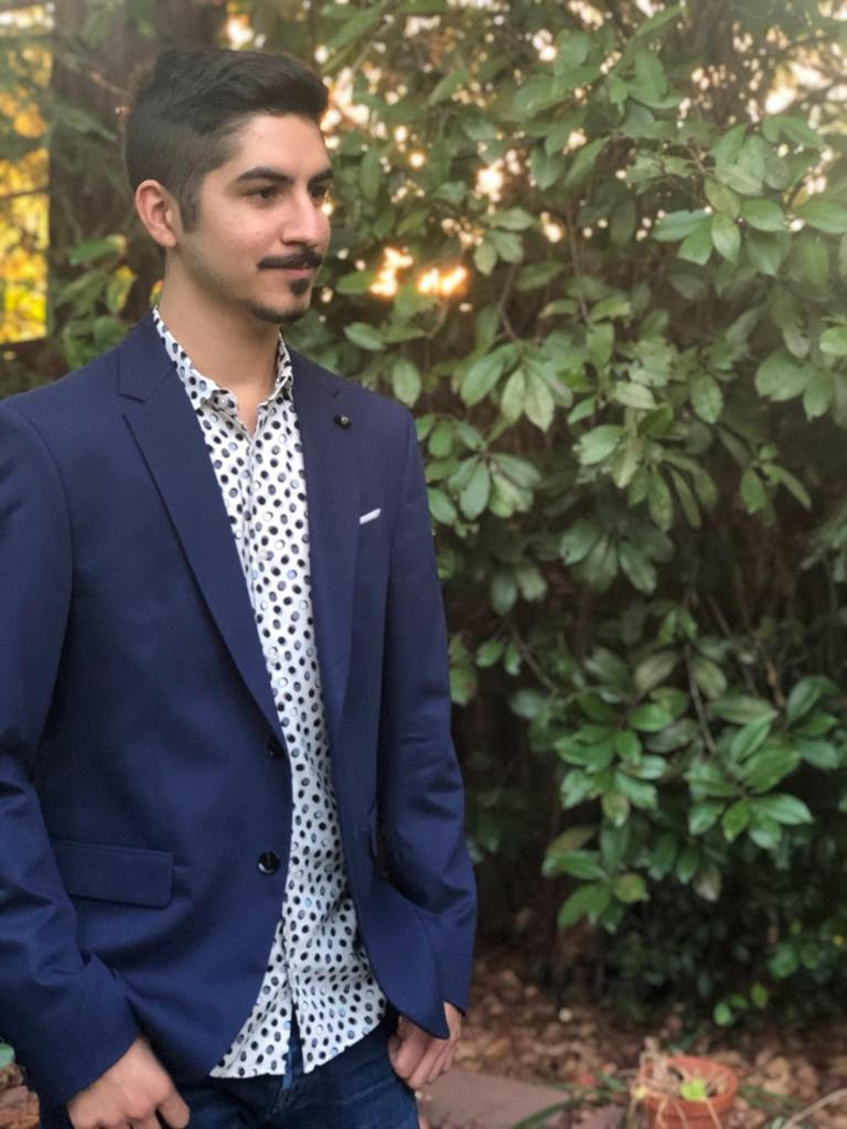 photograph of Aiden Burnett in a rather smart looking outfit. Intended for use on his user page.