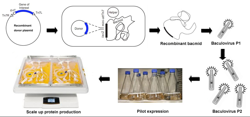 There are several benefits of using baculovirus service to express target proteins, such as larger inserts, ability of post-translational modifications, enhanced protein folding and function, high expression levels and safety.