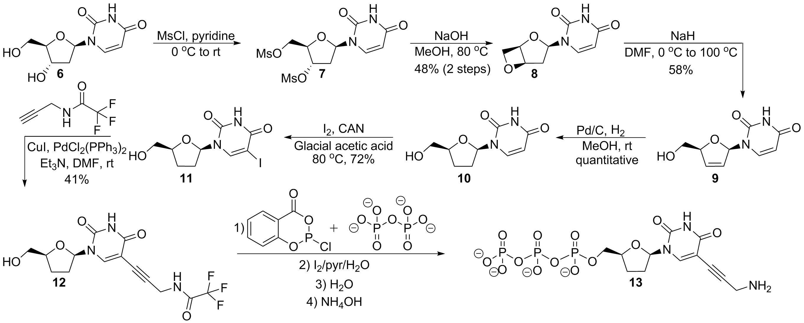 Strategy for the synthesis of 5-propargylamino ddUTP, 13.