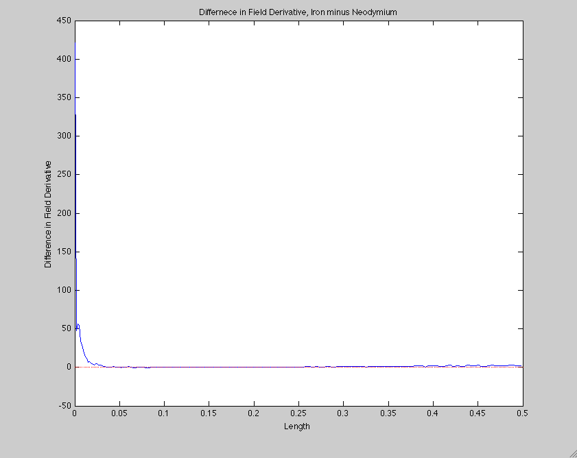 Difference between the derivatives of the iron yoke and the neodymium yoke.