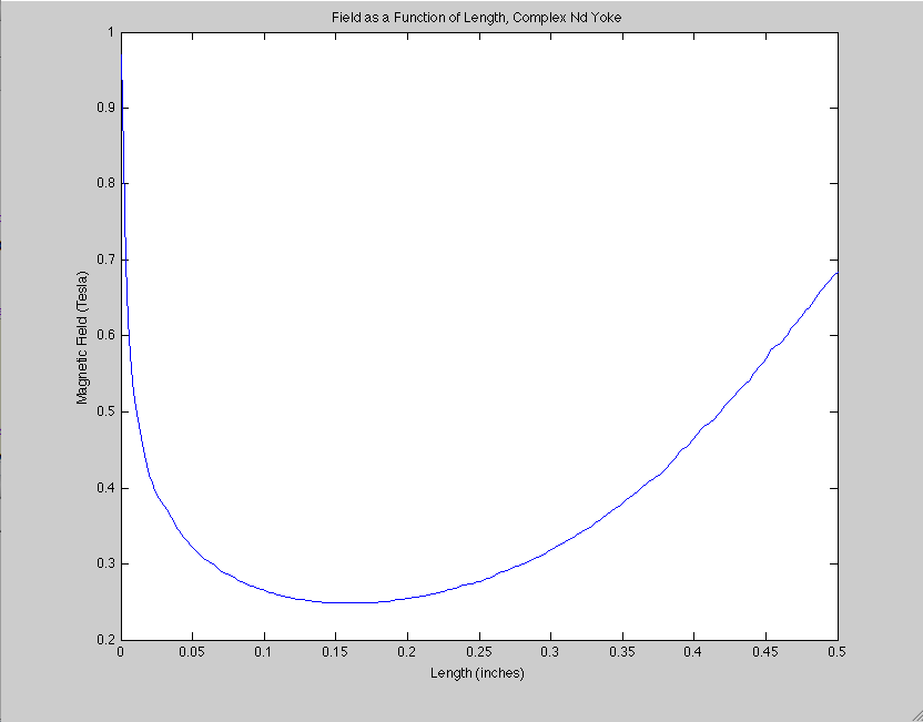 The field from my complex neodymium magnetic yoke between the tip of the cone and the center of the flat part.
