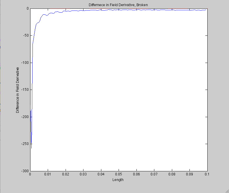 The difference between the "broken" yoke, and the complex yoke, over 0.1". For this graph, a positive value means that the "broken" yoke has a greater derivative, and in this case it is clear that the whole yoke has a greater derivative.