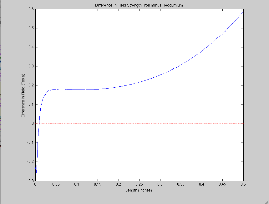 Difference in field between iron core electromagnet and neodymium permanent magnet.