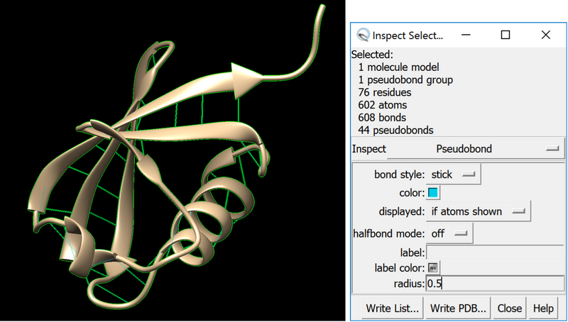 Inspect panel on Chimera showing how to change hydrogen bonds as pseudobonds.