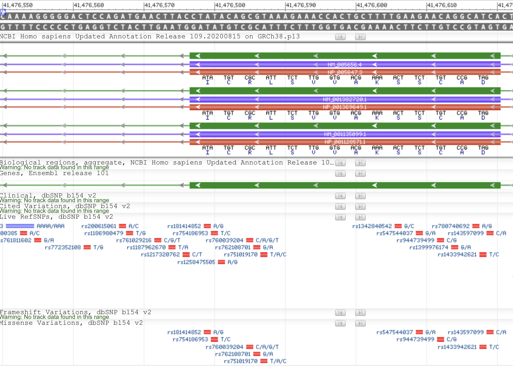 Exon 8 of TMPRSS2 showing missense and frameshift variations.