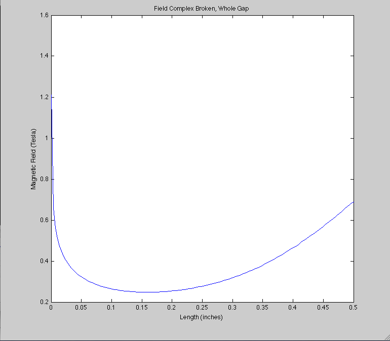 The field intensity of the "broken" yoke over 1/2".