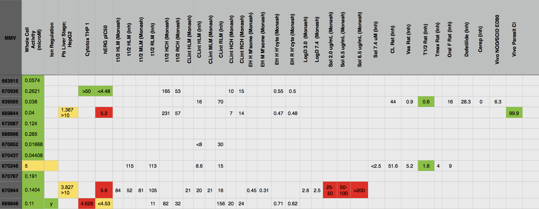 Condensed Data for "Frontrunners". Coloured key illustrates activity: green = good, yellow = ok, red = poor
