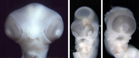 Neural crest-ablated chicken embryos, day 8. Copyright H.C. Etchevers