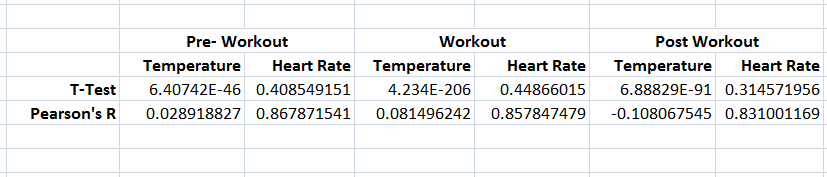 T-Test Values and Pearson's R Correlation Test