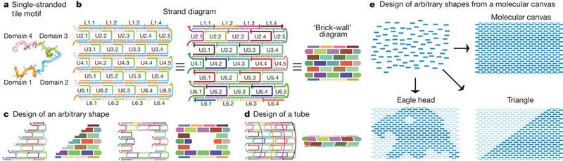 http://www.nature.com/nature/journal/v485/n7400/full/nature11075.html Complex shapes self-assembled from single-stranded DNA tiles