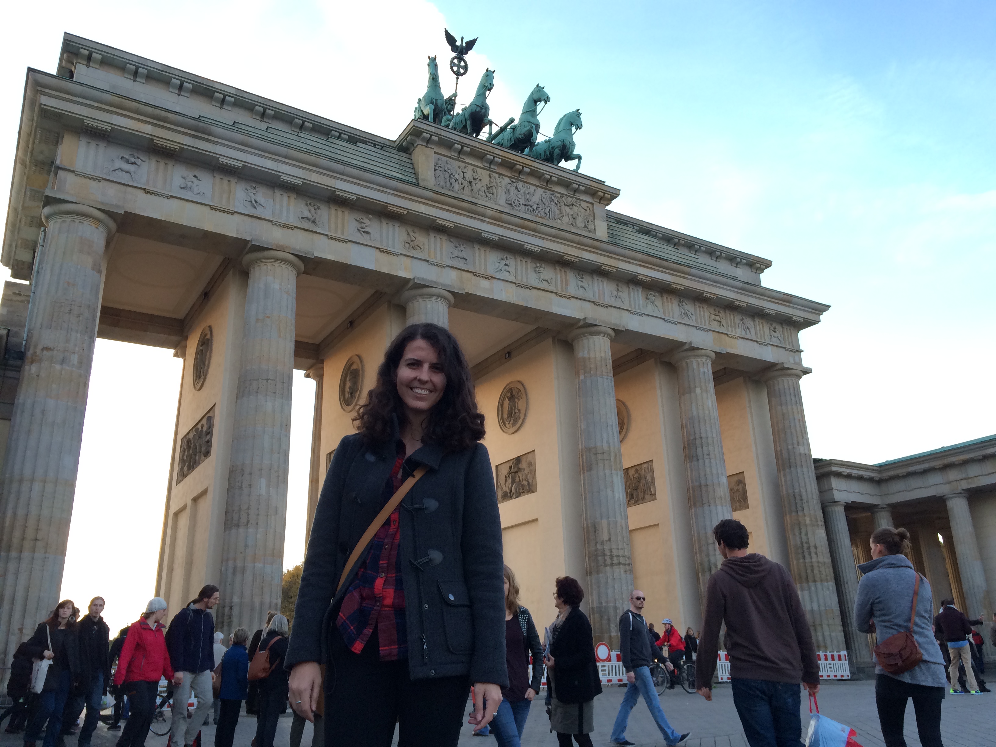 User Kristen Horstmann in front of Brandenburg Gate in Berlin, Germany