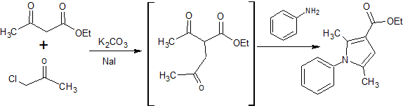 Synthesis of ethyl 2,5-dimethyl-1-phenyl-1H-pyrrole-3-carboxylate