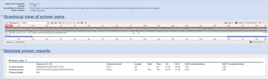 added picture of Primer BLAST results comparing amplicon, forward primer, and reverse 1 primer
