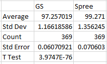 Descriptive Statistics include average, standard deviation, standard error, and p value in degrees Fahrenheit for the temperatures recorded using the Gold Standard meter and the Spree device.