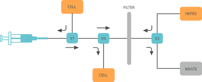 The protocol showed below was tested with a syringe filter and yielded good initial results, we are now looking forward to test this further beyond the iGEM project and implement an automated system for our lab.