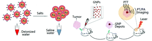 Mengmeng Sun, Fei Liu, Yukun Zhu, Wansheng Wang, Jin Hu, Jing Liu, Zhifei Dai, Kun Wang, Yen Wei, Jing Bai, Weiping Gao. "Salt-induced Aggregation of Gold nanoparticles for photoacoustic imaging and photothermal therapy of cancer". Nanoscale 2016, 8, 4452-4457.