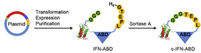 Jianwen Guo, Jiawei Sun, Xinyu Liu, Zhuoran Wang, Weiping Gao. "Head-to-tail macrocyclization of albumin-binding domain fused interferon alpha improves the stability, activity, tumor penetration, and pharmacology". Biomaterials 2020, 250, 120073