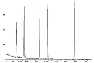 Where Δtr is the difference in time between the two peaks and wav is the width of the peak in units of time. The area under the peak can generally tell how much of a compound or molecule is in a sample solution. Figure 4 shows what a typical GC chromatograph would look like. To determine which peak corresponds to which compound, a known sample can be run through the system as a reference or a standard from literature to best analyze the results.[4]