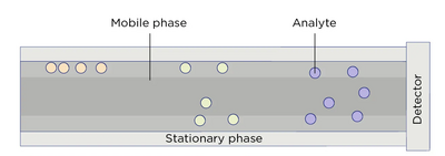 Chromatography is a technique in the field of analytical chemistry that separates a fluid mixture into its parts for analysis. The field of chromatography is very broad and is used in many different ways. Chromatography can be done on a small strip of paper to large industrial columns for pharmaceutical purification.[1] Types of chromatography include gas chromatography (GC), high performance liquid chromatography (HPLC), size exclusion, ion exchange, hydrophobic interaction, and affinity chromatography. The different types of chromatography, use different properties of molecules to separate and identify mixtures.[2]