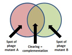 The purpose of this assay is to determine if mutations in a set of phages are present in the same gene or in different genes; the phages are tested pairwise. Host cells that are not permissive for phage growth are co-infected with two different phage mutants. If the two phages have defects in different essential genes, then the co-infected cell will contain one functional copy of each gene, and this in trans complementation will allow the phages to lyse the cell and form a plaque. If the two phages have defects in the same gene, they will not be able to complement and no plaques will form.
