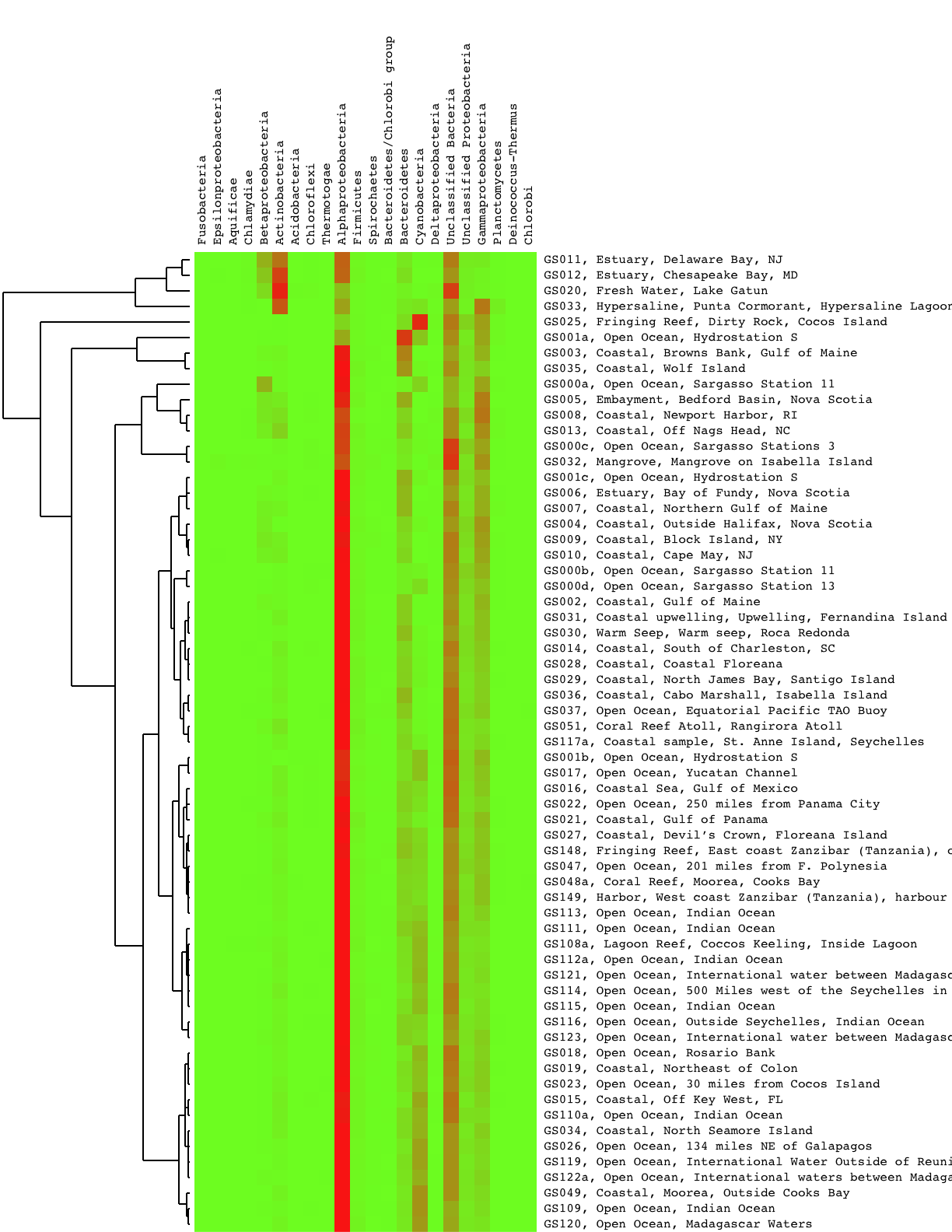 31 phylogenetic markers were identified by BLAST and HMM searches from the Global Ocean Survey read peptides. The marker sequences were then aligned and trimmed.