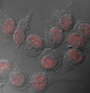 Suspension cells can be centrifuged onto glass slides. Cytospin technique utilizes a single layer of cells that are deposited onto a clearly-defined area of a glass slide. The slides are designed such that a "filter card" absorbs the excess fluid from the cells. This technique deposits the cells for nuclear presentation.