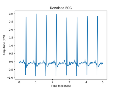 Here are the results obtained using a normal sinus rhythm ECG, the peaks are very clearly and accurately detected. The data used was from the MIT-BIH Normal Sinus Rhythm Database [1][2].