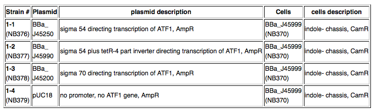 - Strain "4-1" = K12 E. coli chassis