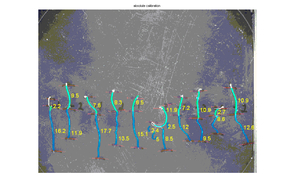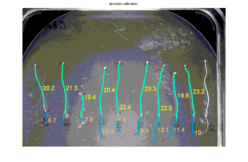 Visual inspection of the resulting tiff images that show the measurements on top of the original image enables one to validate the accuracy or inaccuracy of the measurement and to correlate the values saved in the text file to the different seedlings on the plate. It is useful to copy the values from the text file to an excel type of spreadsheet and there to relate the values to the experiment design. Some percentage of seedlings (usually around 20%) will not be measured accurately automatically, and depending on the application could either be measured manually or discarded from the analysis.