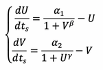 The parameters beta and gamma represent the cooperativity of the promotors of the respective repressors. The toggle switch promotors we use will have a given cooperativity.