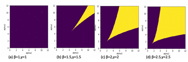 (a) alpha1 = 10, alpha2 = 10, beta = 2, gamma = 2