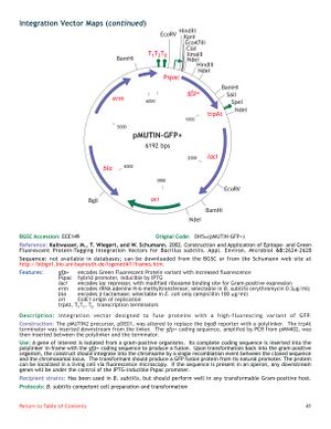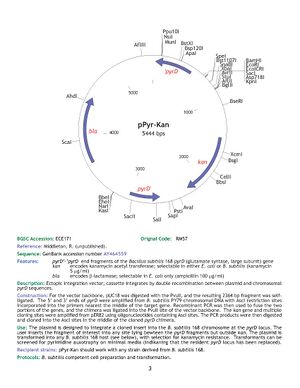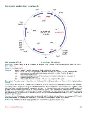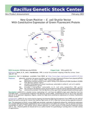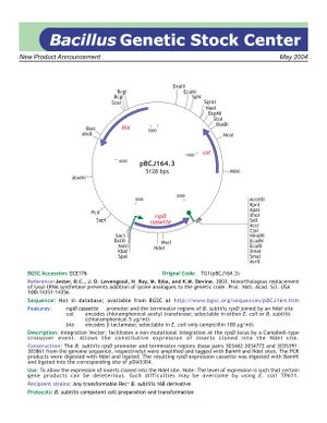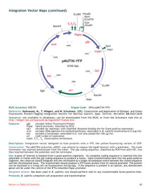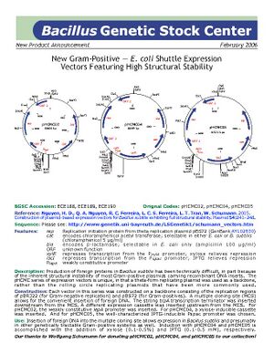 All these vectors were kindly provided by Dr. Dan Ziegler, Director of the Bacillus Genetic Stock Center at Ohio State University.