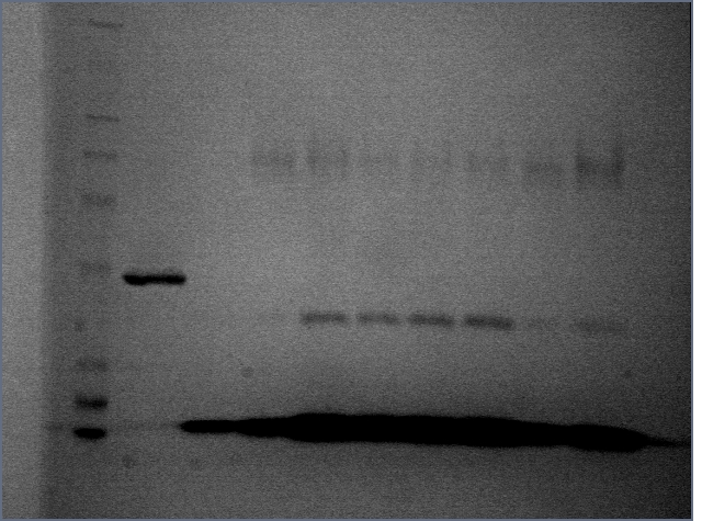 Many of the lanes have bands that are unaccounted for by both streptavidin and thrombin. Since the streptavidin bands from previous native gels are consistent with the bands seen in the 8/9 native gels, these are likely streptavidin. Perhaps some of the sample was lost while denaturing it.