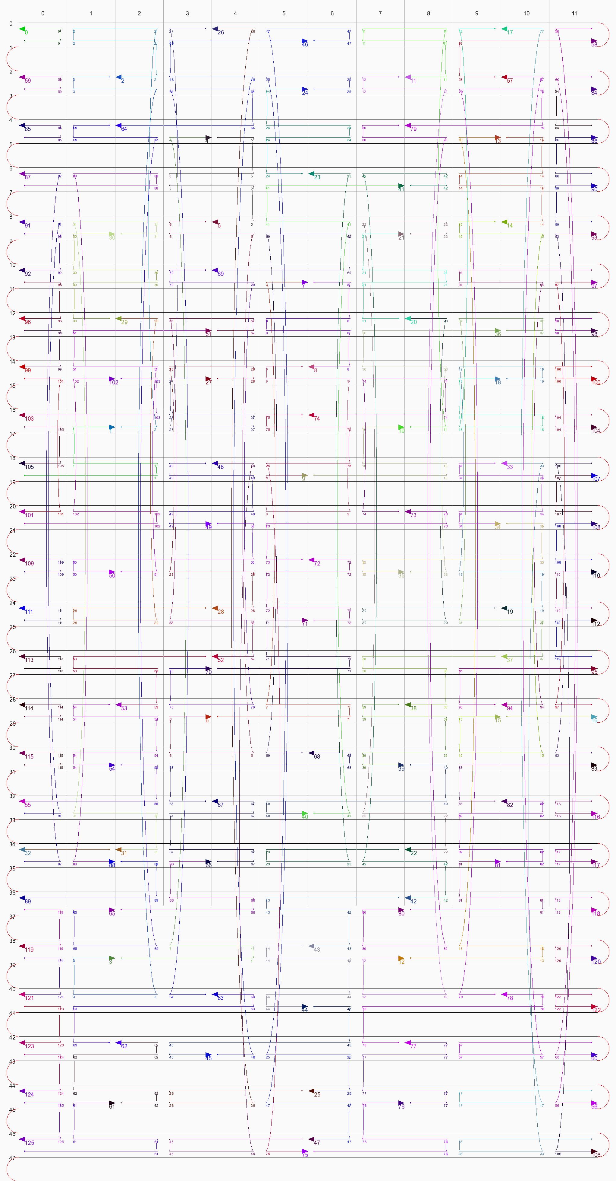 Update: v.1.1 is smart enough to create an appropriately sized bitmap, attempts to avoid the overlapping strand problem of v.1, and has slightly better colors. Unfortunately, it runs slower due to a large bitmap size and some exponentiation that's in there for kicks.