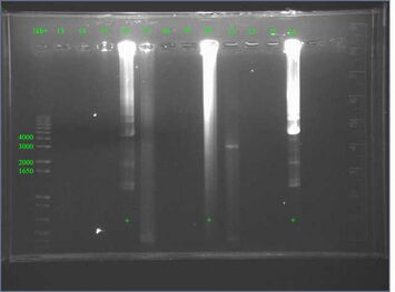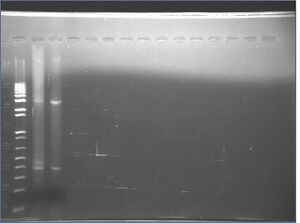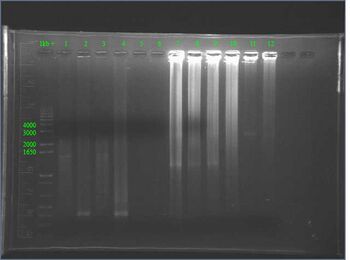 We extracted and purified the 3kb band from reactions 21. According to the nanodrop, we had a DNA concentration of 9.5 ng / µL.