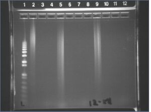 Overall fail; though only one positive control came across (one wasn't ran on the gel) out of 3. Could our template not exist? More analysis needed.